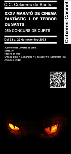 Del 23 al 25 de novembre, les Cotxeres de Sants va acollir el festival de cinema fantàstic i de terror més irreverent i gamberro que es recorda als nostres barris. Diversos van ser els plats forts d’aquesta edició: el 25è Concurs de Curts, la nit més llarga, el certamen de microrelats, el lliurament de premis… Però també van arribar, per si no n’hi hagués prou, altres interessants novetats: l’obertura del festival amb un espectacle d?improvisació, un passatge del terror i una nova presentadora.